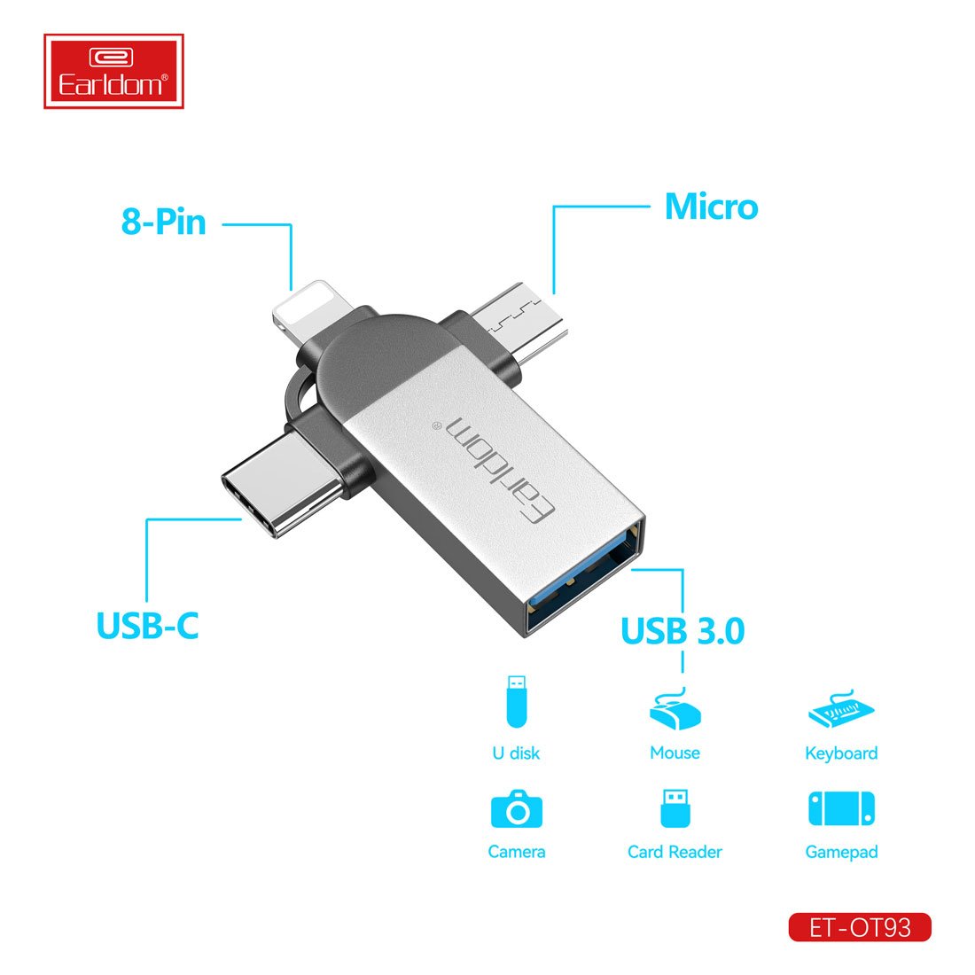 Earldom OT93 (OTG+USB) To iPhone/micro/Type-C Adapter